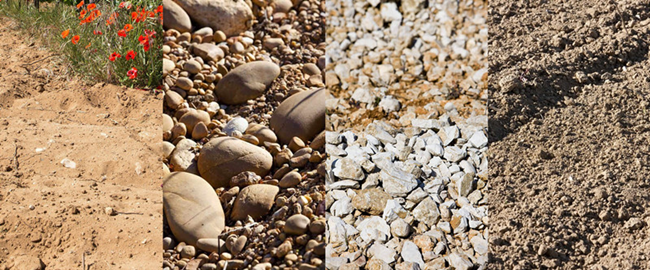 羅納河谷葡萄園坐落于中央高原(Massif Central)與阿爾卑斯山(Alps)之間,北邊被中央高原古老的噴發(fā)巖所覆蓋,南邊是中生代(侏羅紀和白堊紀)的海洋沉積土壤,以石灰?guī)r為主。第三紀末(約2400萬年至700萬年前),阿爾卑斯山的形成,使得河谷崩裂,將高原分成兩半。地中海的海水涌進來,用巖屑填滿了河谷。從第四紀開始,河谷的坡面形成了很多沖積和崩積而來的階地。如今,羅納河谷葡萄園的風土主要由四種巖石構成:花崗巖、沙土、石灰?guī)r和黏土。這些母巖對葡萄樹根部保持適宜的水分起到了關鍵作用,為這里的葡萄酒帶來結構與芳香。