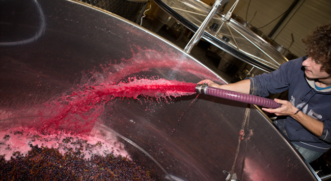 倒罐和回混:發(fā)酵罐底部的葡萄汁泵送至另一個(gè)儲(chǔ)酒罐中,之后再將葡萄汁泵送回原來(lái)的容器中,并從發(fā)酵罐頂部向下噴淋酒帽。