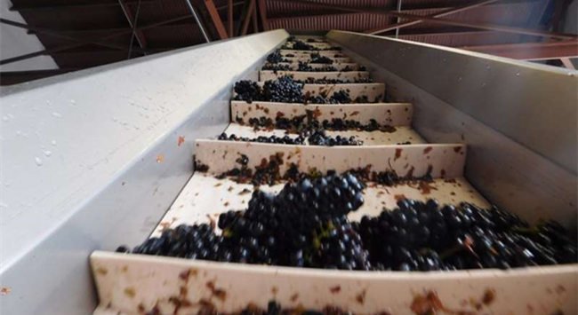 13. 經(jīng)過(guò)篩選后的葡萄會(huì)進(jìn)入除梗機(jī)中進(jìn)行去梗。大部分酒莊現(xiàn)在使用的是去梗和破碎一體化的機(jī)器,所以在去梗的同時(shí),葡萄果實(shí)可能會(huì)被輕微壓榨或者完全壓榨(白葡萄品種)。