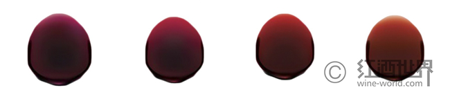 紅葡萄酒陳年后的酒液顏色變化