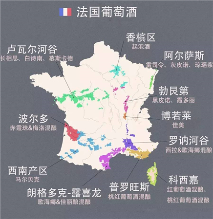 不過法國葡萄酒一般并不會在酒標上標注葡萄品種,而更注重產區,這是因為法國人堅信風土是釀造葡萄酒的首要因素,不同的產區釀出來的葡萄酒有各自的風格特色。