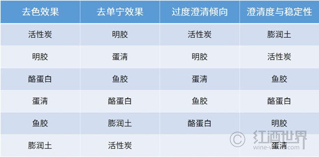 使用明膠來澄清紅葡萄酒可降低引起酒液苦味及澀味的酚類化合物含量,還可減淡酒液的色澤。在澄清過程中,明膠會優(yōu)先與大分子相互作用,因此在澄清陳年葡萄酒這類大分子多酚化合物含量更高的酒液時,它的去色和去單寧效果更明顯。明膠有時也可在發(fā)酵前加入葡萄汁中,以除去汁液的粗糙感和顏色。不過,明膠這種極具侵略性的蛋白質(zhì)澄清劑容易導(dǎo)致過度澄清和褪色,而且它還是一種可溶于酒精,且熱穩(wěn)定性差的蛋白質(zhì),如果過量使用,可能會在酒液中殘留蛋白質(zhì),從而造成酒液渾濁。