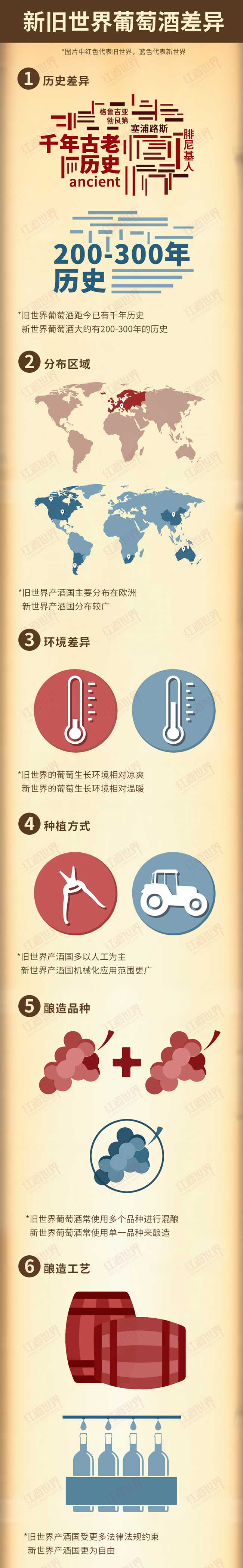 新舊世界葡萄酒各有千秋,關(guān)于這兩個“派別”的討論從未停止。到底是新世界的小鮮肉讓人歡喜?還是舊世界的老紳士更令人著迷?實(shí)際上,正是新舊世界葡萄酒的差異造就了多姿繽紛的葡萄酒天地,本文將通過一張圖來幫助大家探尋新舊世界的不同。