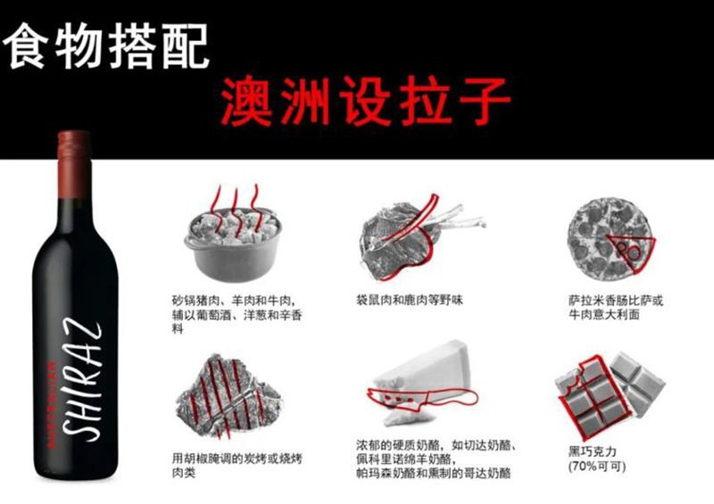 將澳大利亞設(shè)拉子與美食搭配的訣竅是選擇與葡萄酒的力量感和強(qiáng)壯程度相匹配的原料或菜肴。值得注意的是,澳大利亞設(shè)拉子胡椒般的辛香料味道與烤肉是奇跡般的絕佳搭配。