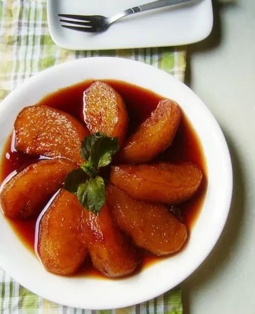 功效:法式紅酒燉雪梨,有溫暖腸胃,潤(rùn)肺止咳的功效。