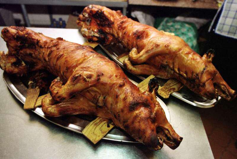 迥別于中式烤乳豬的葡式烤乳豬,先用橄欖油、葡萄酒、黑胡椒、百里香、大蒜等食材制作的調(diào)味汁進行腌漬,烘烤的過程中在表皮涂以橄欖油,肉質(zhì)柔嫩不干,皮香肉嫩。它可以與巴巴萊斯科干紅葡萄酒(Barbaresco)、黑皮諾干紅葡萄酒(Pinot Noir)、梅洛干紅葡萄酒和維歐尼干白葡萄酒(Viognier)等搭配享用。