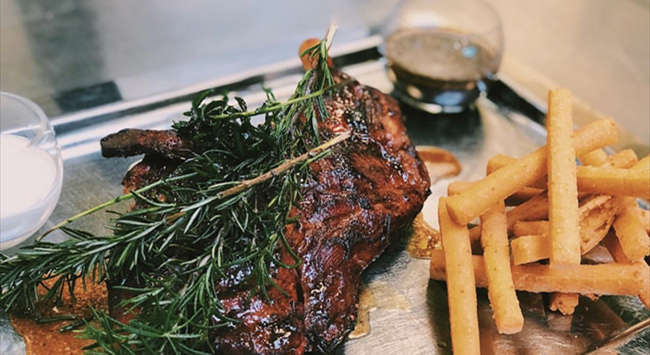 羊肩肉即羊肩背部位的肉,由互相交叉的兩塊肉組成,外層有厚肥肉層。由于羊肩部活動較多,羊肩肉纖維長,肉質(zhì)較為結(jié)實,汁多鮮美,口感豐富。細火慢烤下的羊肩肉,油脂會慢慢滲于表面,與肉汁交融,別有一番風(fēng)味,此時與一款酸度和單寧較高的葡萄酒搭配起來是再適合不過了。
