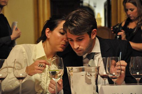 四種味感中:舌尖對甜最敏感;接近舌尖的兩側(cè)對咸最敏感;舌的兩側(cè)對酸最敏感;舌根對苦最敏感。品酒時入口不要馬上吞下,要用整個味蕾去感受葡萄酒中的味道。先將酒含在口中,做咀嚼吸氣動作,反復(fù)于口腔中進行攪動,布滿口腔四周,舌頭兩側(cè)、舌背、舌尖,并延伸到喉頭底部,讓香味散發(fā)到整個口腔中。品嘗后,葡萄酒留下來的余香具有持久性,這就是余韻。