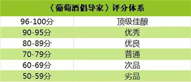 (3)《葡萄酒倡導家》采取 100 分制,起始分為 50 分,共分為 6 個檔次。