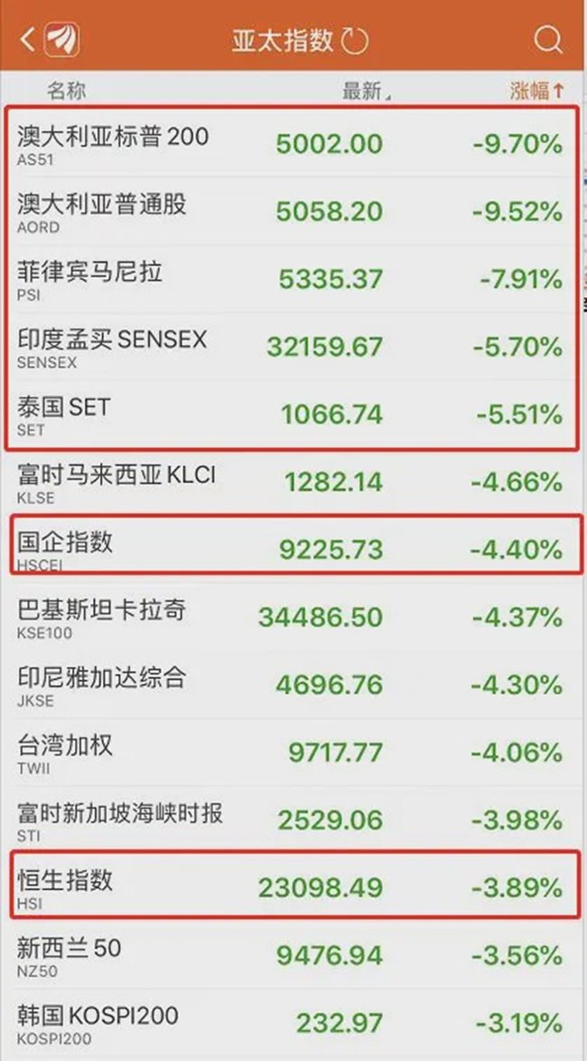 覆巢之下,無有完卵。早在3月16日,美股開盤暴跌超7%后,亞太主要股市也集體下挫。