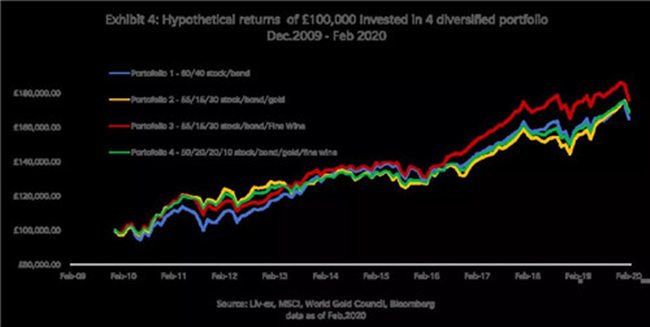 圖表顯示,含有精品葡萄酒的投資組合收益回報相比更高