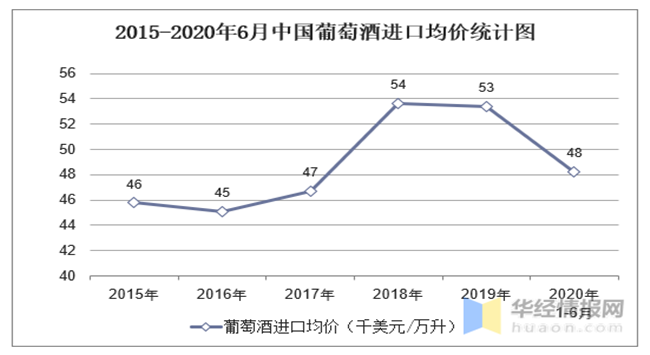 2015-2020年6月中國葡萄酒進(jìn)口均價(jià)統(tǒng)計(jì)圖