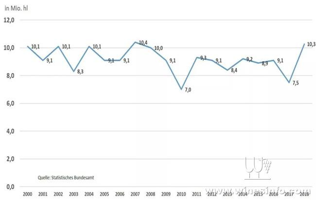 2018年德國葡萄酒的全國產(chǎn)量達(dá)到10.27億升。這個數(shù)值略低于2018年10月發(fā)布的10.67億升估計值。最新數(shù)據(jù)由德國葡萄酒協(xié)會(DWI)根據(jù)聯(lián)邦統(tǒng)計局的最終收獲結(jié)果予以發(fā)布。