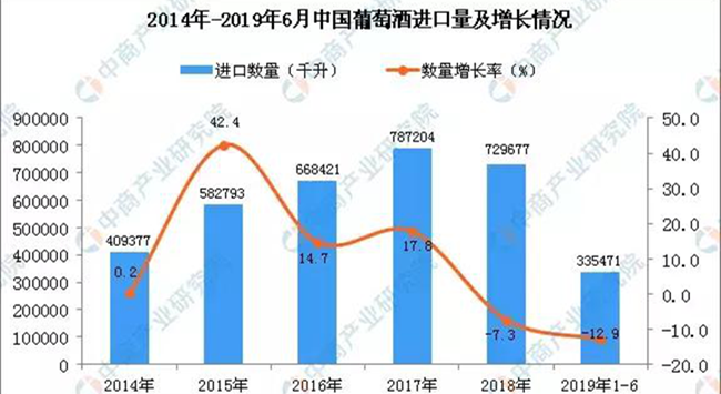 數(shù)據(jù)顯示,2019年上半年中國葡萄酒進(jìn)口量為335471千升,與去年同期相比下降12.9%;進(jìn)口總金額約為14.6億美元。與去年同期相比下降9.2%。