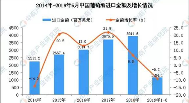 近日,中商產(chǎn)業(yè)研究院發(fā)布了一份2019年1-6月中國葡萄酒進(jìn)口數(shù)據(jù)。以下是今年上半年中國葡萄酒進(jìn)口數(shù)量及金額增長(zhǎng)率情況。