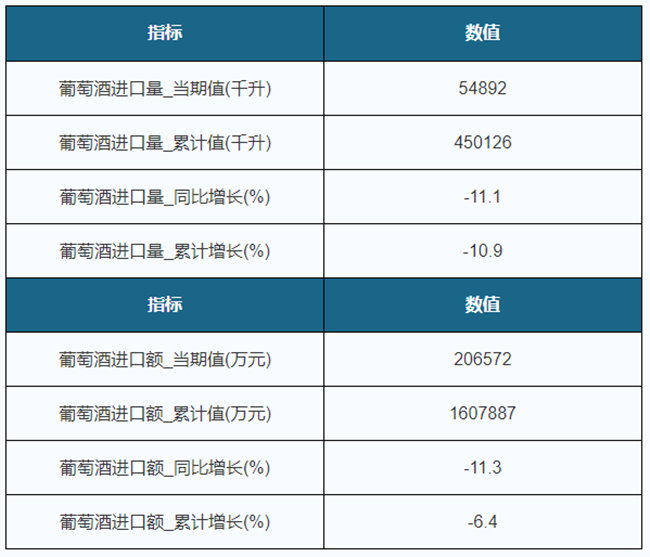 2019年1-8月我國(guó)葡萄酒進(jìn)口量累計(jì)下降10.9%