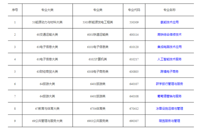 根據(jù)《普通高等學校高等職業(yè)教育(專科)專業(yè)設置管理辦法》,在相關學校和行業(yè)提交增補專業(yè)建議的基礎上,教育部組織研究確定了2019年度增補專業(yè)共9個,現(xiàn)予公布,自2020年起執(zhí)行。