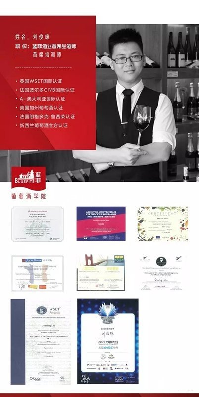 隆重的揭牌儀式結(jié)束后,藍(lán)菲學(xué)院迎來了首堂葡萄酒培訓(xùn)體驗(yàn)課,課程主講是藍(lán)菲酒業(yè)首席品酒師劉俊雄先生。劉俊雄是藍(lán)菲酒業(yè)高薪聘請的一位才情卓越的品酒師,專注公司葡萄酒文化體系的建設(shè)與文化傳播。他授課特點(diǎn)風(fēng)趣幽默,善于與學(xué)員互動,能夠在課堂上以潤物細(xì)無聲的方式將葡萄酒文化、知識植入學(xué)員腦海。體驗(yàn)課上,劉俊雄對葡萄酒的認(rèn)知以及授課方式獲得嘉賓們的高度贊譽(yù)。