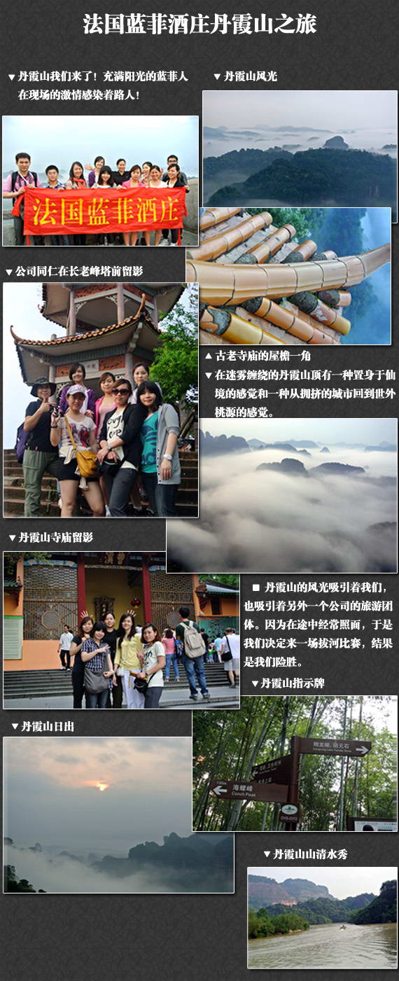 丹霞山我們來了!法國藍菲酒莊紅酒招商部、財務部、市場部、網絡部等諸多藍菲人在現場的激情感染著路人!