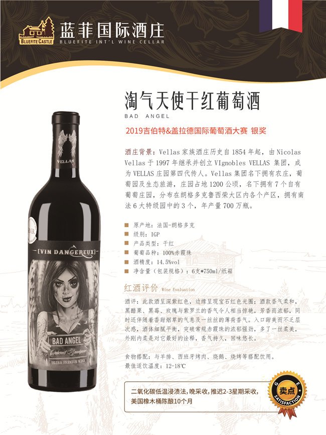 一般的朗格多克葡萄酒大都平易近人,簡單易飲,干凈純粹,像校園學(xué)生般單純青澀,沒有成熟男女的深沉與知性。但是,隨著近年來朗格多克葡萄酒品質(zhì)的提升,也不乏復(fù)雜、平衡且有集中度和深度的紅葡萄酒出現(xiàn),藍(lán)菲酒業(yè)戰(zhàn)略合作伙伴Vellas酒莊出品的三款葡萄酒在2019吉伯特&蓋拉德國際葡萄酒大賽一路披荊斬刺,酒品及風(fēng)味令人驚艷:嘉仕頓干紅葡萄酒、快樂天使干紅葡萄酒榮獲2019吉伯特&蓋拉德國際葡萄酒大賽金獎,而淘氣天使干紅葡萄酒榮獲2019吉伯特&蓋拉德國際葡萄酒大賽銀獎!